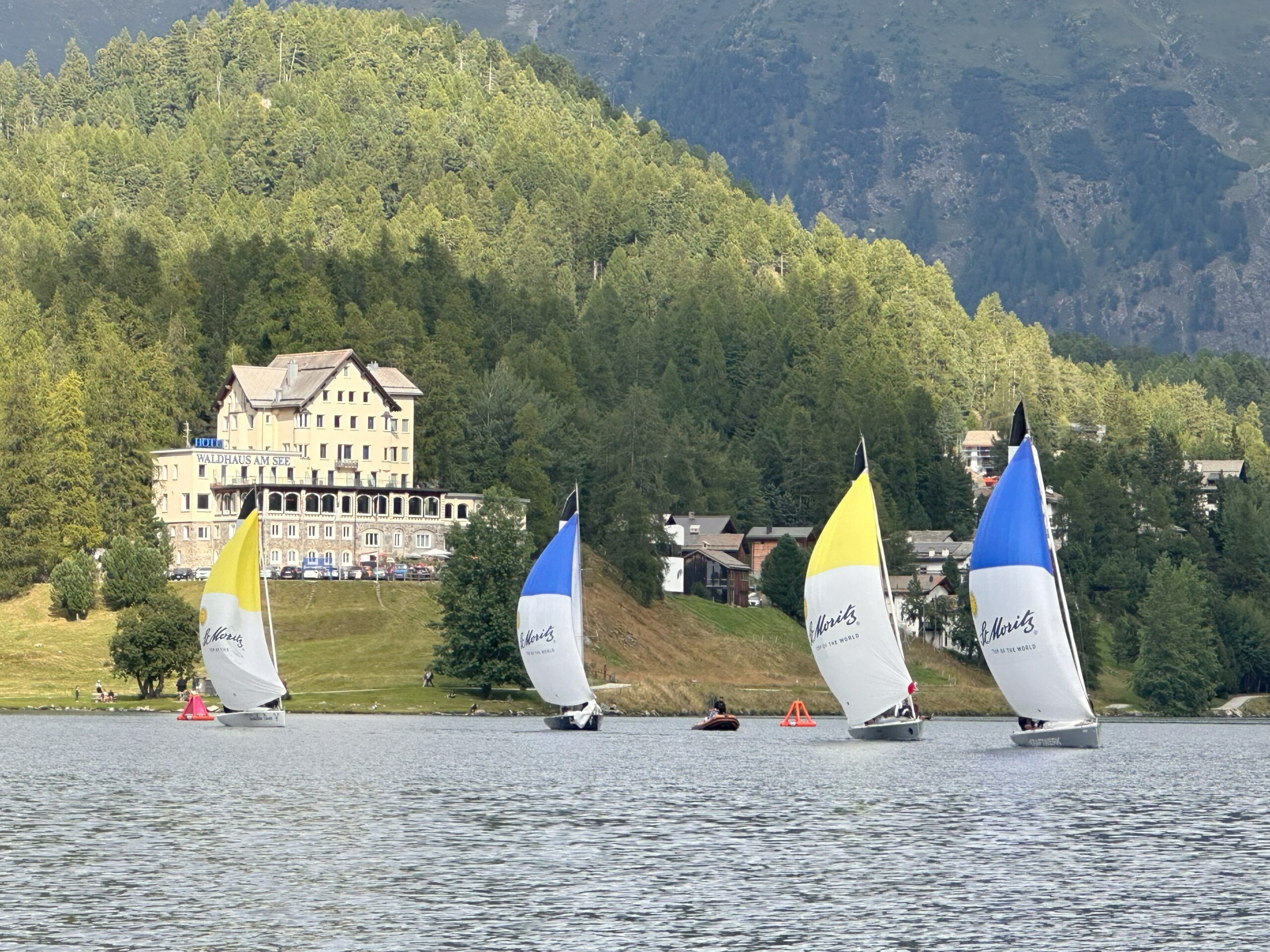 Am Samstag um 11 Uhr starten wir mit vergleichbaren Windverhältnissen. Weitere 14 Races liefern sich top Segler vor der traumhaften Kulisse in St. Moritz. Anschliessend geniessen wir das Abendessen im Segelhaus St. Moritz gleich neben dem Segelclub.