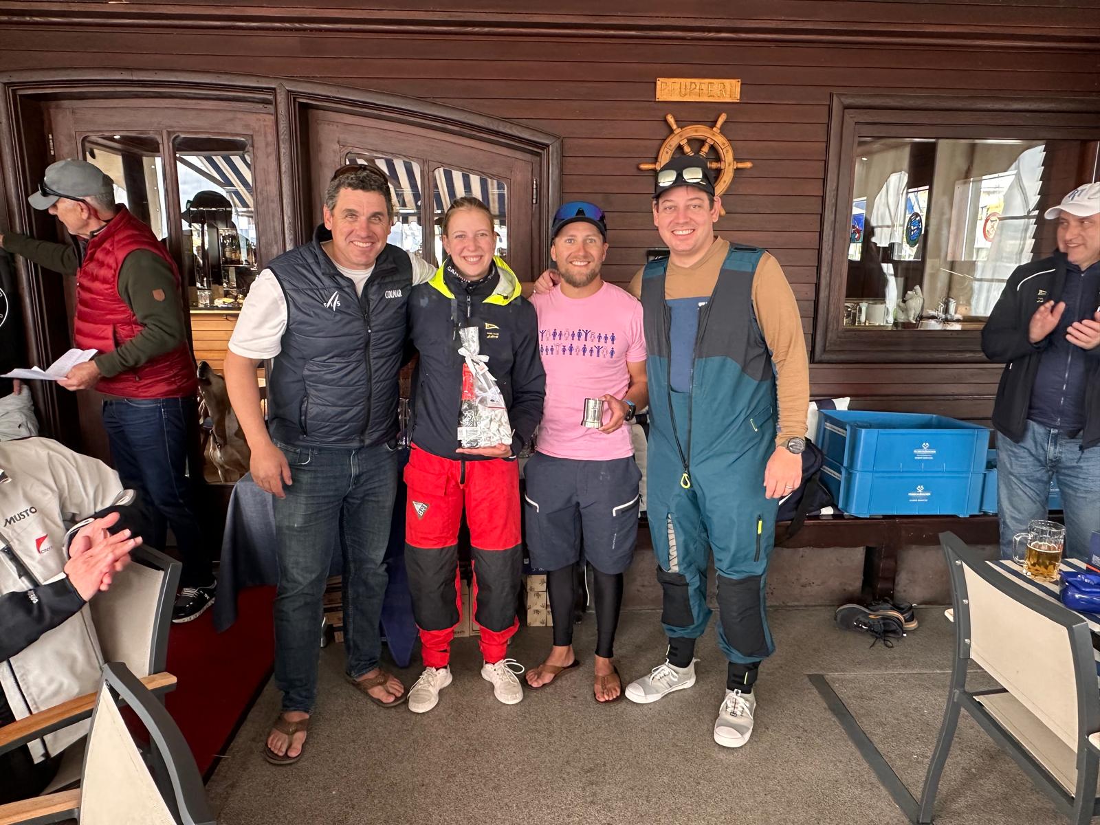 Über den Gesamtsieg freuten sich Julian Flessati und seine Crew vom Regatta Club Bodensee. Am Samstag noch auf Rang 2, konnten sie sich mit einem 1. und einem 3. Platz in der Gold-Flotte den Sieg sichern – und damit ein Skiweekend im Hotel Crystal für die gesamte Crew. Auf dem 2. Platz folgte das Team blunote mit Beat Müller vom Zürcher Yacht Club (das brachte ein Skiweekend im Hotel Hauser). Das Podest vervollständigten die Seedammpiraten, geskippert von Christa Kuster, die mit einer vollen Ladung Passugger (all you can take!) an den oberen Zürichsee zurückfuhren.